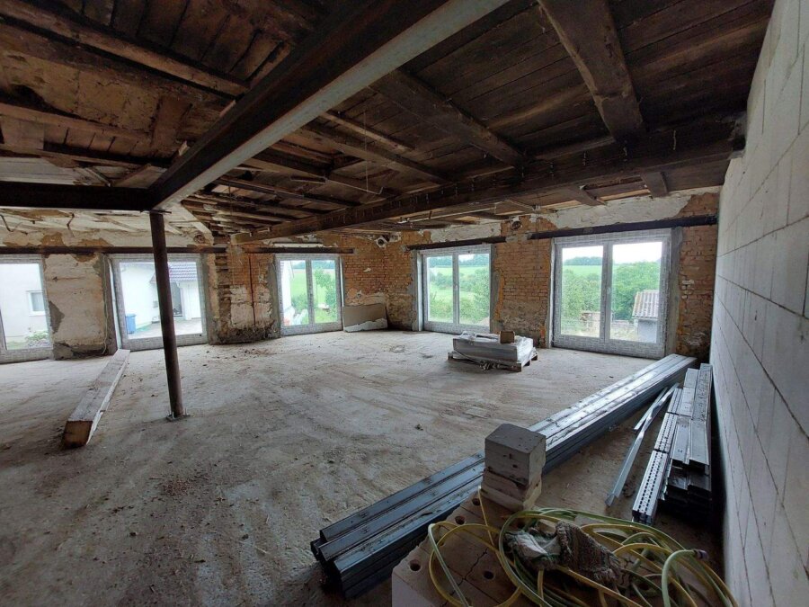 Ein weiteres Highlight ist der großzügige Anbau mit weiteren ca. 150 m² Fläche. Mit seinen bodentiefen Fenstern, dem Blick auf Hof und Weiden sowie der Möglichkeit zur individuellen Gestaltung, bietet dieser Bereich ideale Voraussetzungen für ein modernes Wohnerlebnis, aber auch für eine gewerbliche Nutzung.